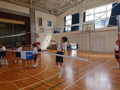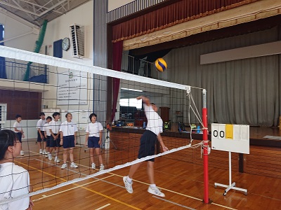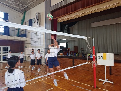 1年生は体育でバレーボールについて学習しています。今日はスパイク練習を中心に活動を行いました。