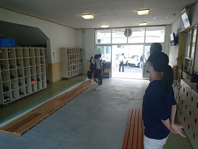 登校の様子です。登校してきた子どもたちを教職員が出迎えます。