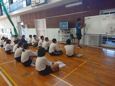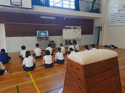 2年生は体育で「跳び箱運動」に挑戦しています。最初に、安全に活動するためのルール、注意事項などについて確認をしました。