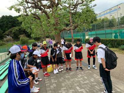 表彰式を終え、本日の活動は一切終了となりました。顧問より今日の労いと明日の確認がありました。明日は、男子3ペア、女子1ペアが出場します。明日も頑張っていきましょう。