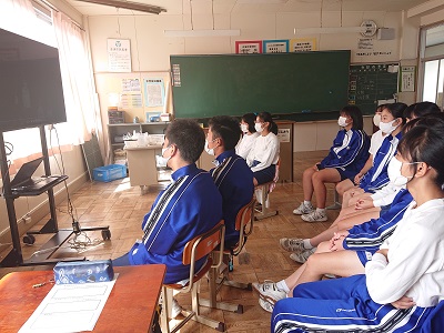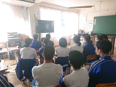 2年生は道徳の時間に、「聲の形」という教材で話し合いました。最初に映像を見ながら、自分がこのクラスにいたらどう行動するのかを考えました。