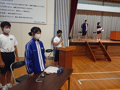 本日、選挙管理委員会の生徒が中心となって、「後期自治会役員選挙立会演説会」を開催しました。会長、副会長候補が登壇し、堂々と演説を行いました。