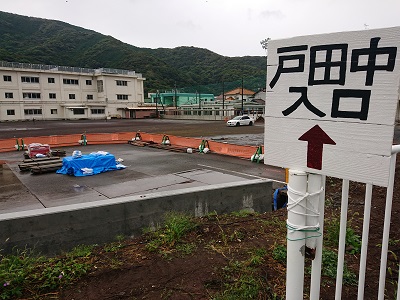 日々、業者の方が中学校北側の県道拡幅工事を行っています。グラウンド北側の門及び横断歩道が使用できなくなっております。