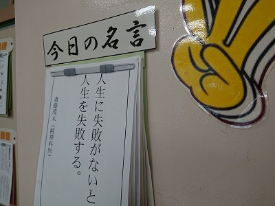 各クラスには、学級担任が思いを込めて用意した「黒板メッセージや今日の名言」が掲げられています。朝早くから学級担任が準備しています。