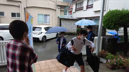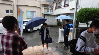 本日、PTAあいさつ運動を実施しました。本日ご参加の保護者の皆様、天候不順の中、戸田小中の子どもたちのために大変ありがとうございました。