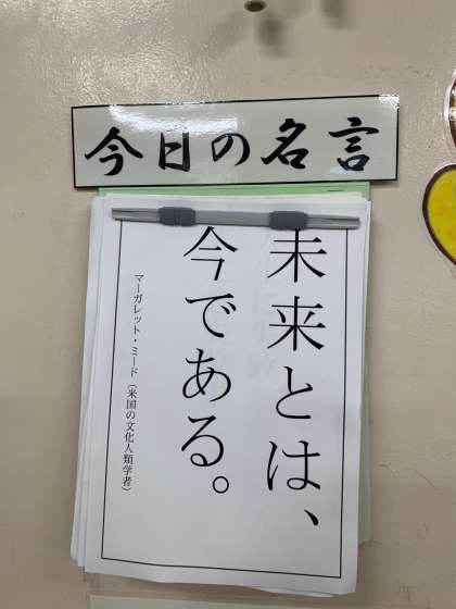 各クラスには、学級担任が思いを込めて用意した「黒板メッセージや今日の名言」が掲げられています。朝早くから学級担任が準備しています。