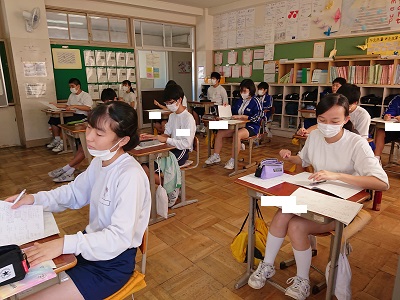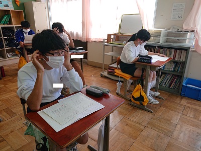 3年生は数学で先週末に実施した中間テスト返しと解説を行っていました。