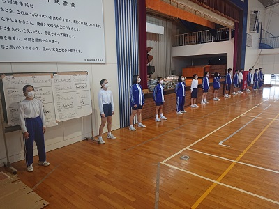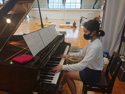 2年生は音楽で合唱曲「HEIWAの鐘」を練習しています。今日は、体育館で本番と同じ立ち位置で練習しました。本番当日(30日)を目指し、精度を上げていきます。