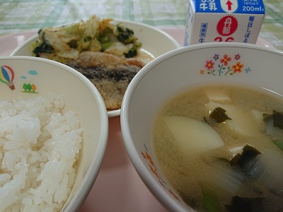 今日の献立は、秋の魚であるサンマでした。サンマは漢字でも「秋刀魚」と書きます。