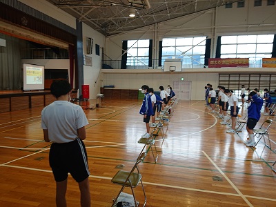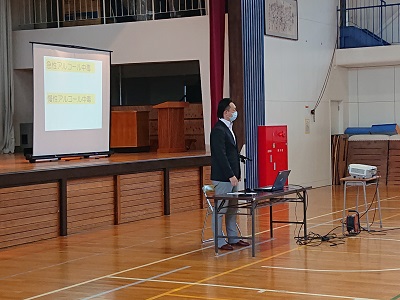 第6時に体育館で「令和2年度薬学講座」を開催しました。講師は本校の学校薬剤師さんにお願いしました。この講座は、「たばこ、飲酒、薬物がもたらす心身への影響を理解すること」及び「感染症についての知識や予防方法を理解すること」等を目的に進められました。生徒は、薬剤師さんの講話をしっかりと聞いていました。