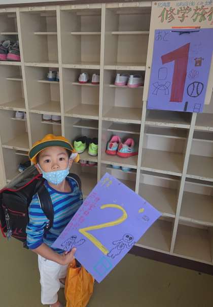 小学6年生の修学旅行カウントダウンカレンダーです。明日、6年生は修学旅行に出発します。