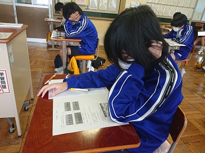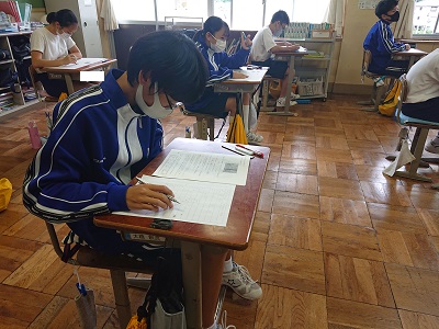 1年生は保健体育で、2学期定期テストを実施しました。生徒は、これまで学習したことを振り返りながらテストに臨んでいました。