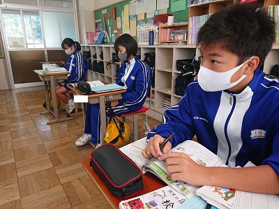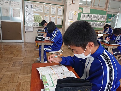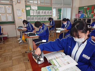 2年生は英語でPROGRAM7の学習をしています。「look+形容詞」を使って「〜に見える」という英文をつくりました。