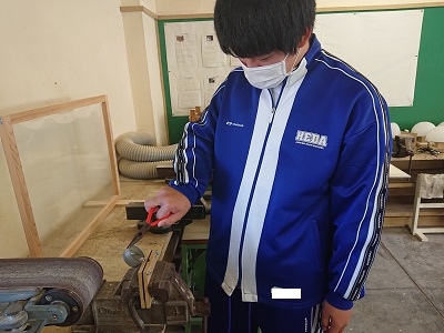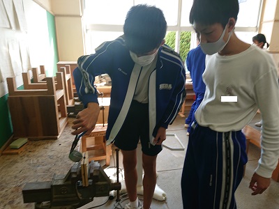 3年生は技術で「低融合金鋳造」について学習しています。今日の作業は、部品加工を丁寧に行いました。何名かの生徒の作品が完成しました。