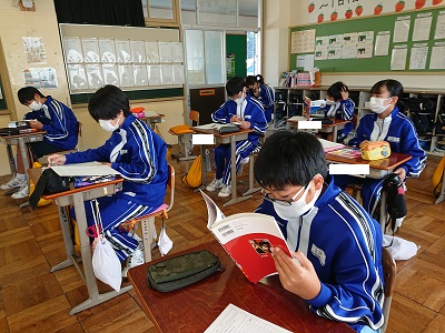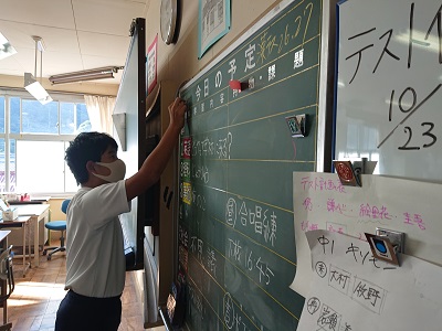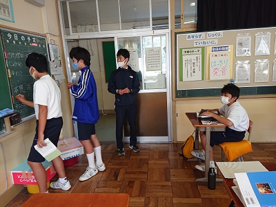 1年生の朝の様子です。朝の支度をしてから諸活動を行っています。