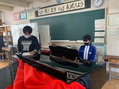 潮風祭文化の部が来週に迫ってきました。今日の昼休み、2年生は音楽室で合唱練習を行いました。