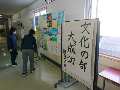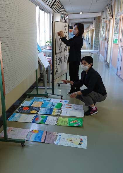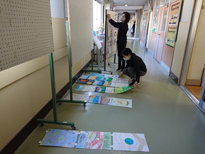 職員室前に、各学年の「潮風祭文化の部ポスター」を掲示しました。