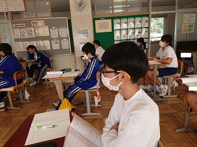 3年生は社会で公民分野を学習しています。今日は「国会の地位と仕組み」について教科書を読んだり、映像を見たりしながら確認しています。