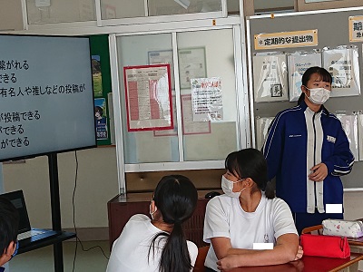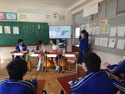 3年生は国語で「多様な意見の交差 グループパネルディスカッション」という教材を学習しています。今日は全員の前でプレゼンテーションを行い、意見交流を行いました。