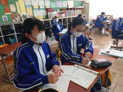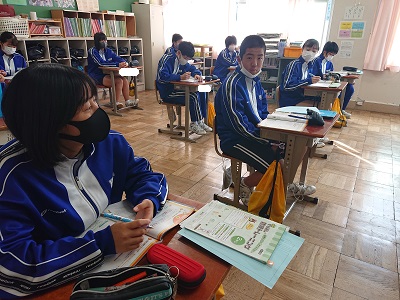 2年生は英語で「英語のしくみ」というページを使って、既習事項の確認を行っていました。