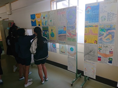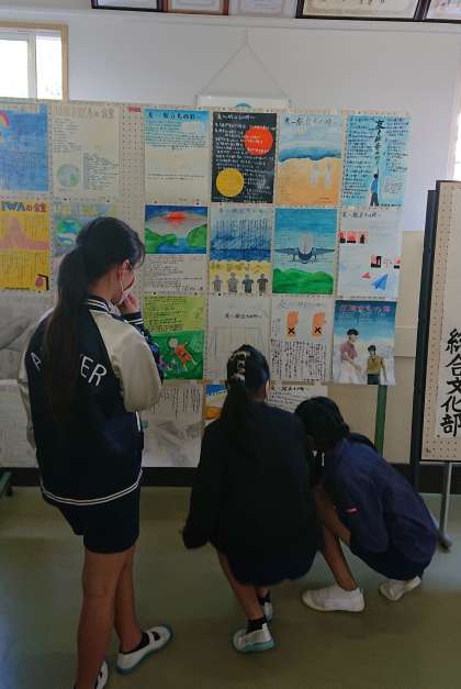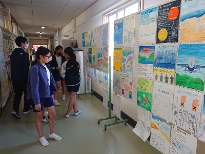 職員室前に、各学年の「潮風祭文化の部ポスター」を掲示しました。職員室前を通りかかった児童生徒がよく見ています。