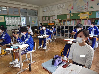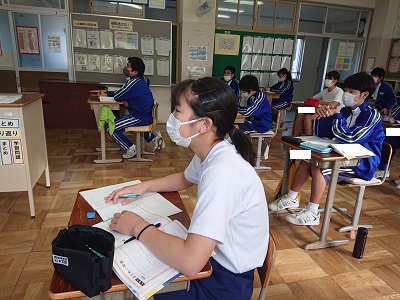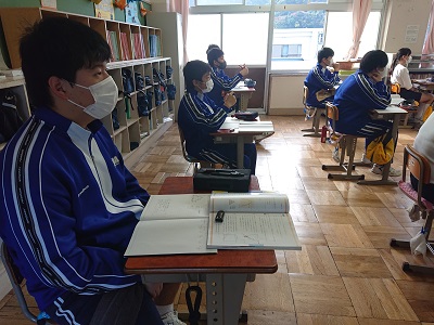 3年生は数学の学習を行っていました。明日の期末テストに向けて、二次関数の基本について再確認していました。