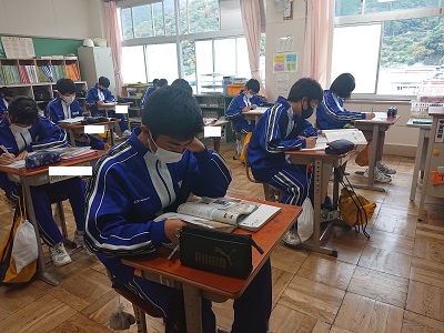 本日は期末テストです。2年生は朝学習の時間に、個々の課題を明確にしながら勉強していました。