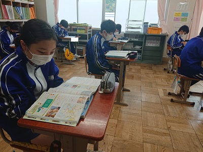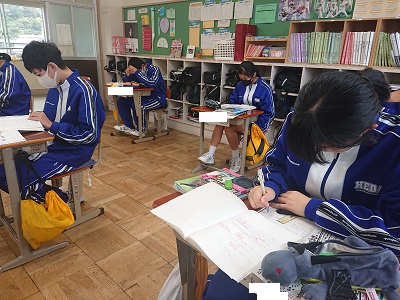 本日は期末テストです。2年生は朝学習の時間に、個々の課題を明確にしながら勉強していました。