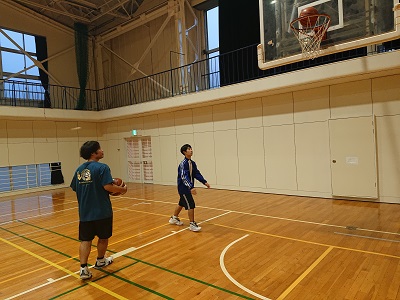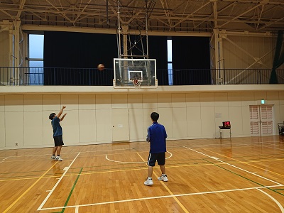 男子バスケットボール部の様子です。1週間ぶりの練習となりました。顧問とシュート練習をしていました。