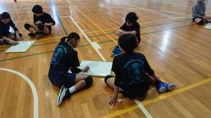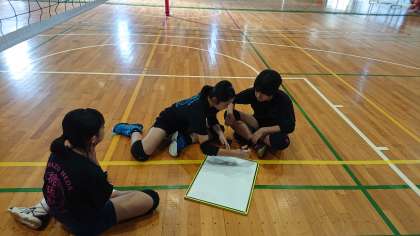 女子バレーボール部の様子です。メニューを考えてから練習に入っていきます。