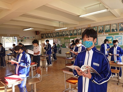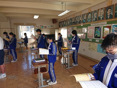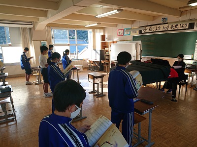 1年生は音楽で、山田耕筰作曲の「赤とんぼ」を合唱しました。