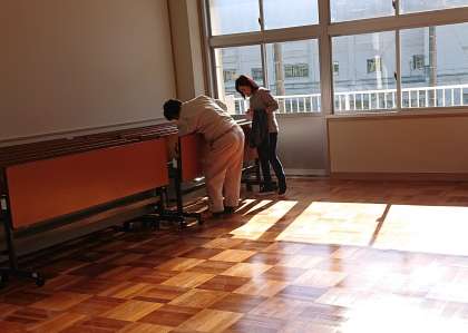 用務員さんやスクールサポートスタッフさんを中心に新校舎への引っ越し作業を行っています。来年4月の開校に向けて、「チーム戸田小中」の職員が準備を進めています。