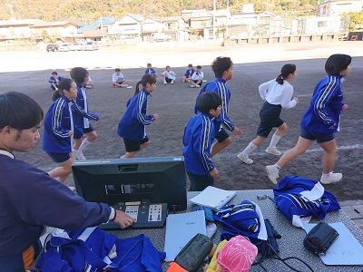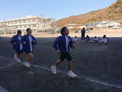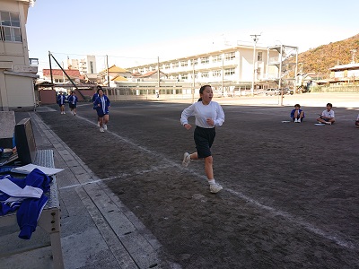 1年生は体育で持久走を行っています。個人で目標タイムを設定しながら、そのタイムをクリアできるよう頑張っています。