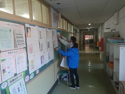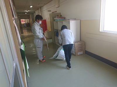 用務員さんとスクールサポートスタッフさんが、校内環境整備に努めています。