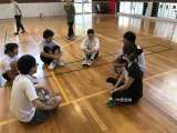 続いて、各班にもどり、新聞紙をできるだけ高くするゲームを行います。