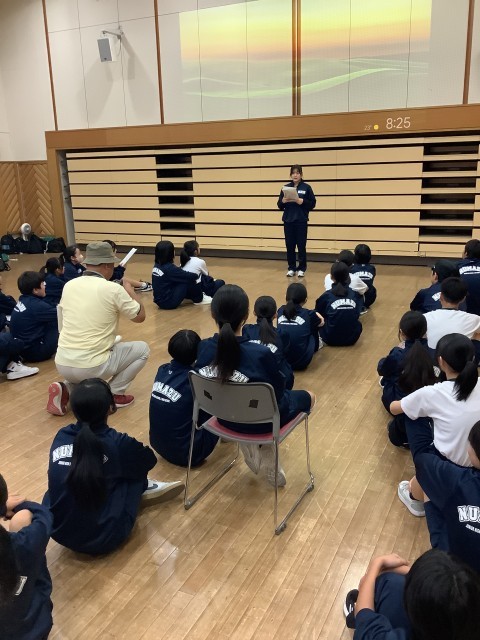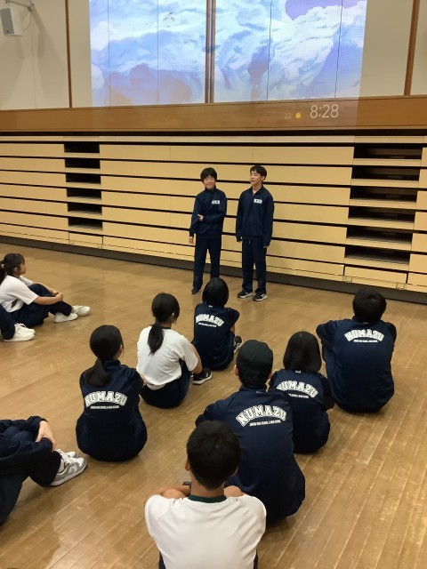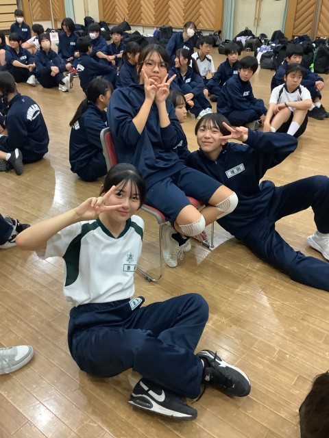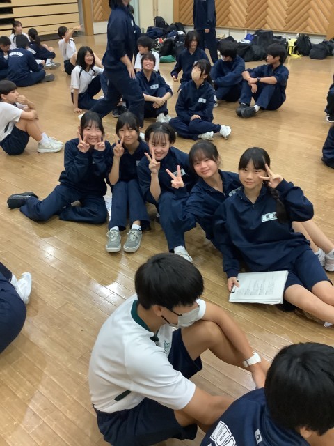10月8日(水)今日、明日、2年生は高原教室です。出発式を終えてこれからバスに乗り込みます。