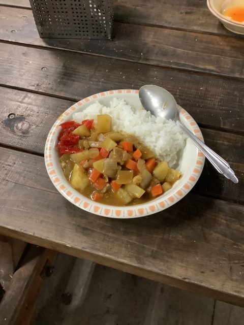 10月8日(水)夕食のカレーが完成しました。2時間以上かかって作った、このカレーの味は一生の思い出です。