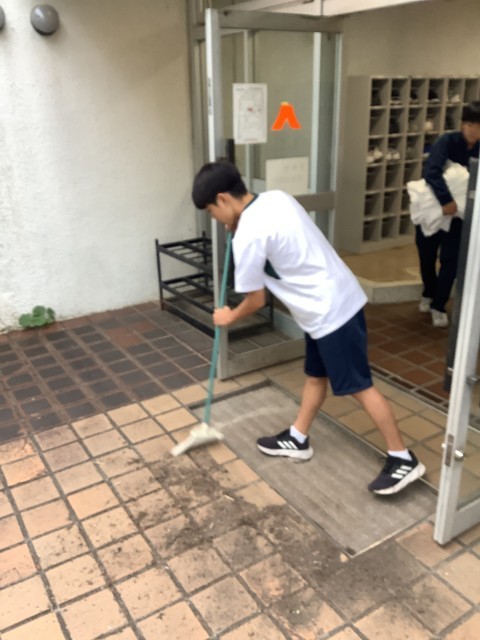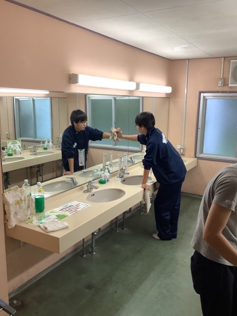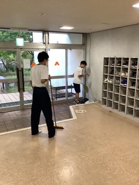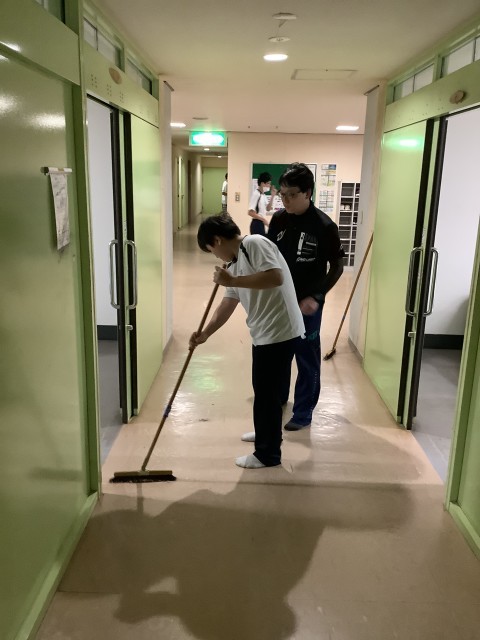 生徒は6時に起床し、朝清掃を行いました。この後は、朝の集いです。