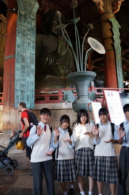 10月15日(木)後半は東大寺でした。中1の社会科で学習した奈良の大仏(盧舎那仏)の大きさに圧倒されました。