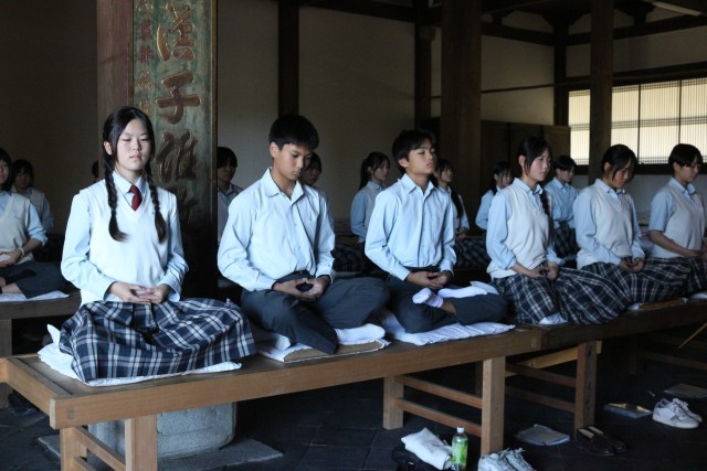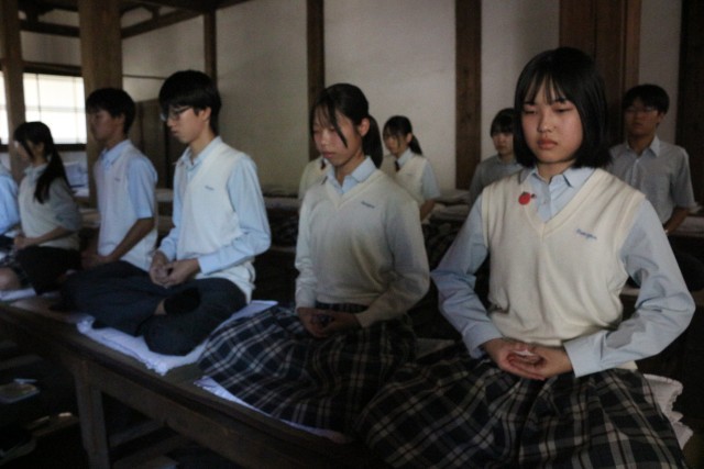 10月15日(木)3Aの学級コースは、東寺から始まり、萬福寺で座禅体験を行いました。日頃の喧噪からはなれ心を無にして座禅しました。