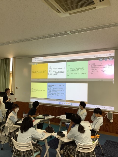 『らしさ』ってなんだろう?というテーマで話し合いました。スパイダー討論という新しい手法での話し合いも注目ポイントでした。