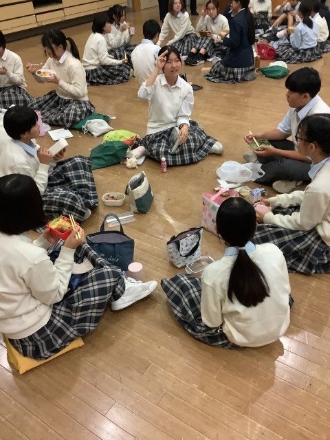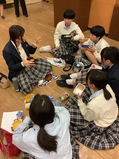 中等部1年生と高校2年生が昼食共にしながら、話をするという企画です。