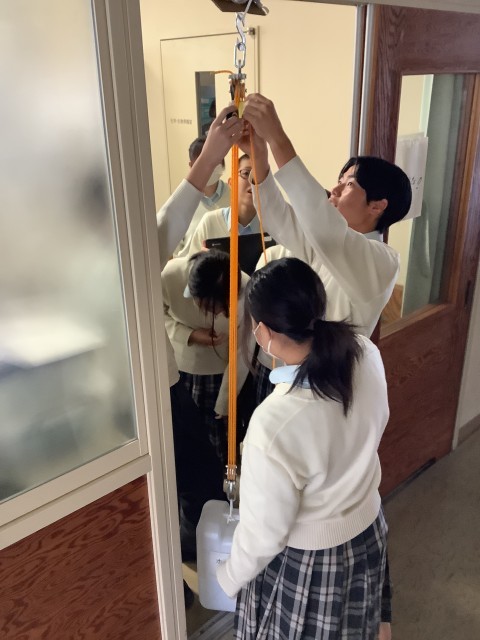 仕事の違いについて、実験を行っていました。物体を持ち上げるのにどれだけの力が必要なのか?