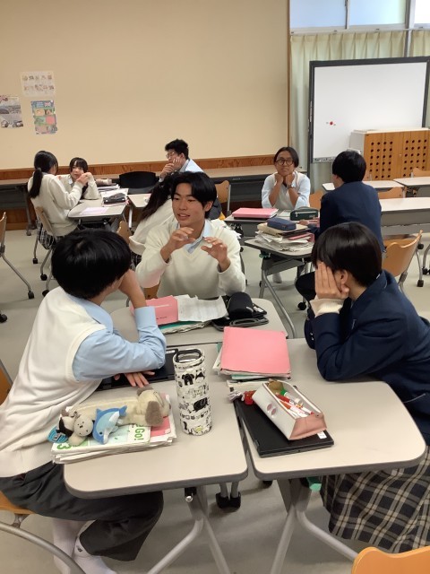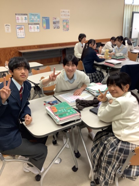 英語は、ALTイーヴィー先生の授業です。建物や場所を英語で説明していました。