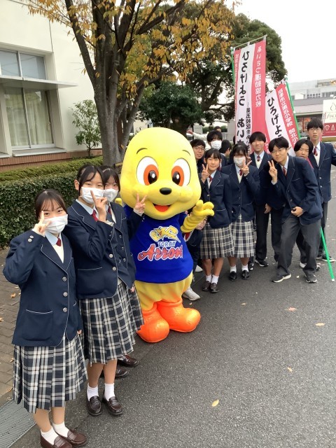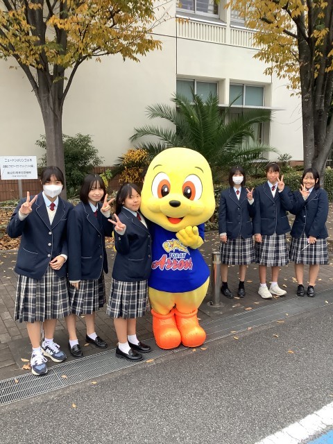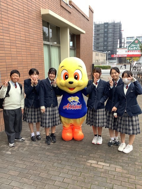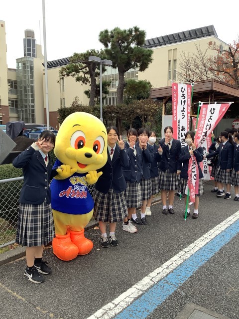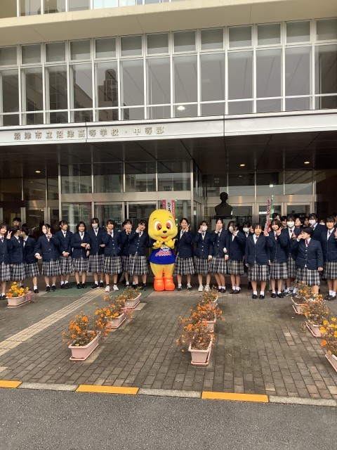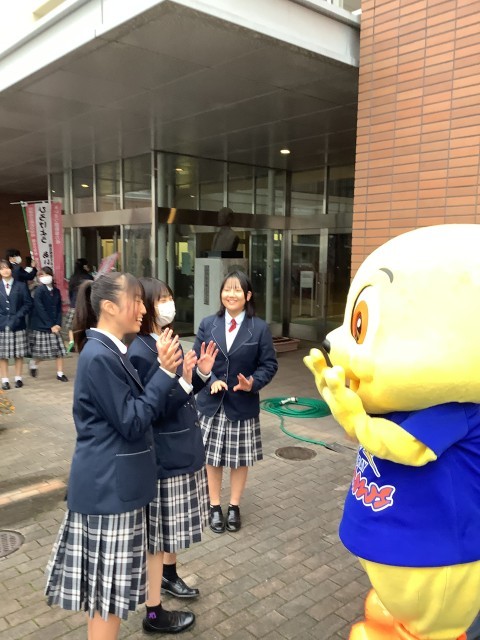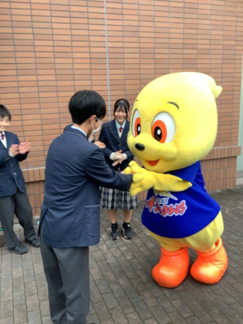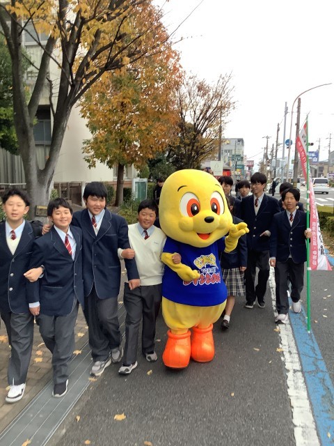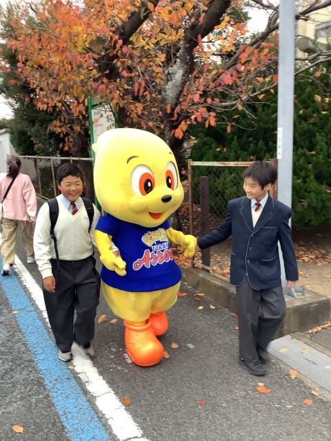 12月3日(水)今朝は、東レアローズのマスコット、アロッチとのコラボ企画であいさつ運動行いました。