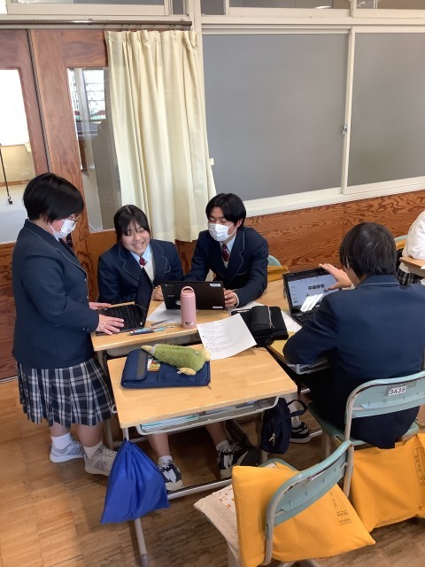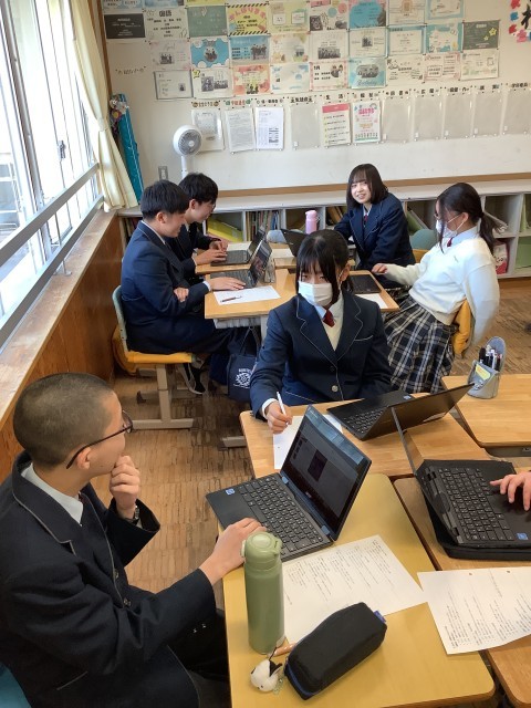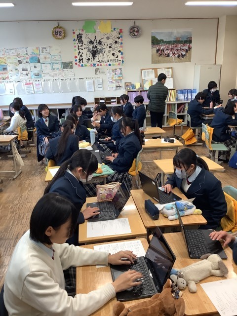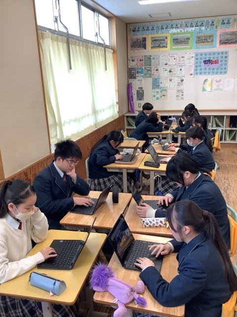 年度末の探究発表会に向けて3年生は、平和学習のまとめを行いました。