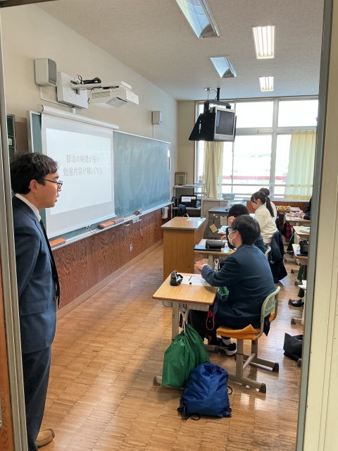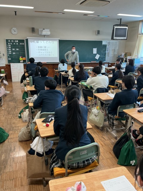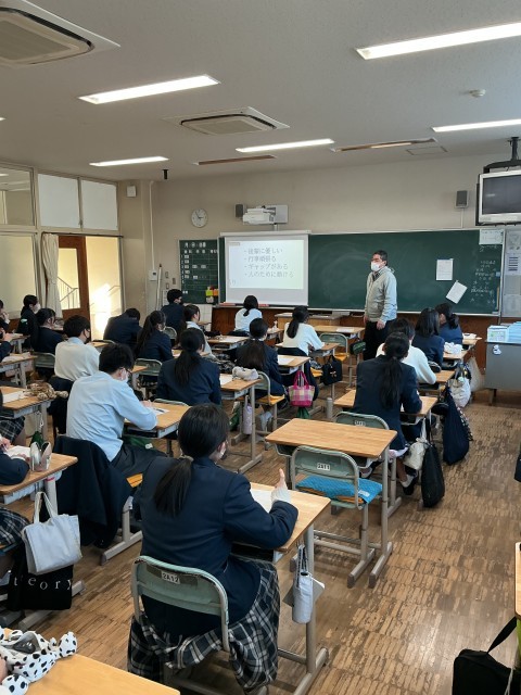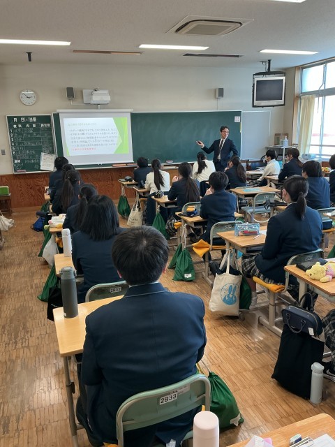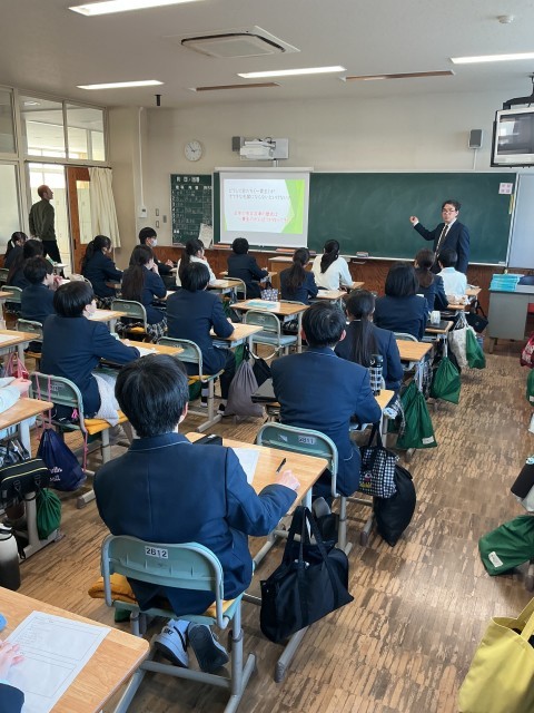 2月26日(木)本日の第6時は進路講演会でした。高校の進路課長と3年部主任から、高校の様子や一貫生へ期待することなどが伝えられました。