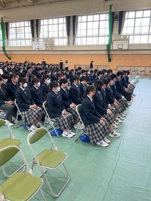 2月27日(金)本日の第4時は、石内直太郎賞表彰式でした。この賞は、Yコース、Gコースより学業に優れた高校3年生に贈られました。参加した中等部3年生は、3年後を想像することができました。