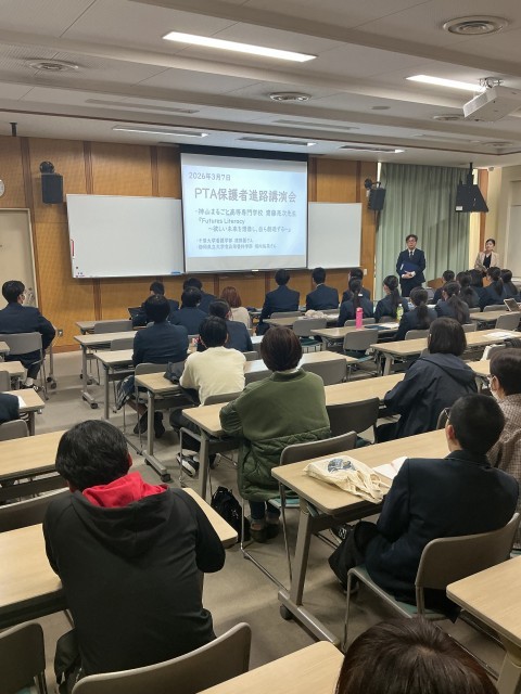 3月7日(土)本日は進路講演会です。講師には、徳島県にある神山まるごと高等専門学校より齋藤亮次様にお越しいただき、『Futures Literacy』について講演いただきました。