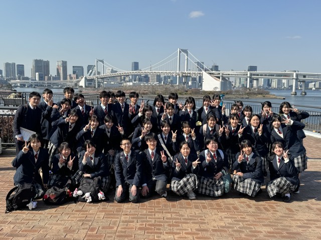 3月10日(火)昨日の3年生郊外学習の様子です。お台場での学級写真です。